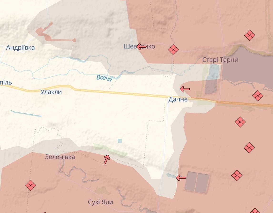 Згідно з картою, росіянам вдалося зайняти позиції на декількох вулицях у східній частині села, розташованого біля траси Запоріжжя - Курахове.