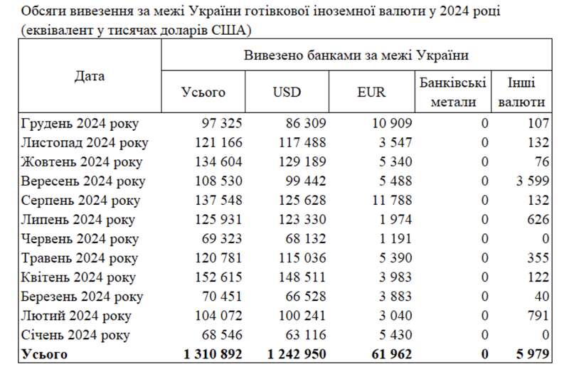 При цьому за рік банки вивезли готівкової валюти на $1,311 млрд.