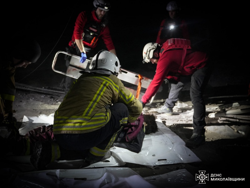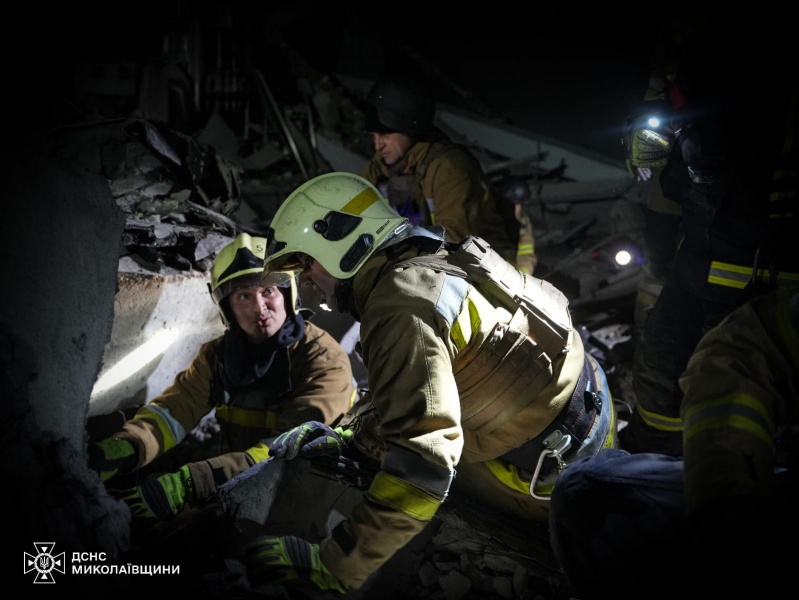 У Державній службі з надзвичайних ситуацій (ДСНС) показали кадри ліквідації наслідків ракетної атаки РФ на Миколаїв, яка сталася сьогодні ввечері.