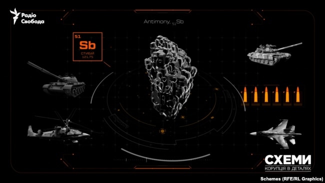На сайті американської компанії Military Metals Corp, яка займається видобутком та продажем стибію, йдеться, що його часто використовують для покращення металевих сплавів – наприклад, для виготовлення куль та снарядів – та зміцнення броні військової техніки.
