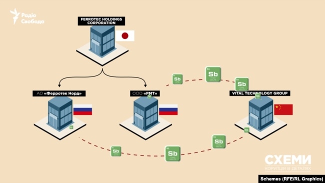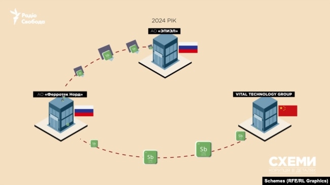 За допомогою джерел з доступом до податкової бази Росії журналісти з’ясували, що у 2024 році «Ферротек Норд» продала кремнієві пластини, де може міститись стибій, заводу «Эпиэл», який виробляє унікальні для Росії складники мікрочіпів.