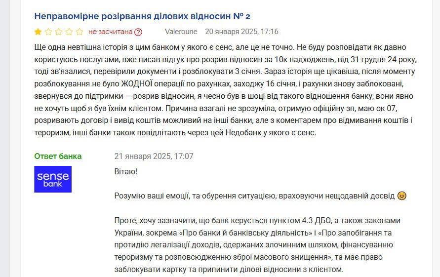 Окрім того, користувачі скаржаться на блокування та примусове закриття рахунків у різних банках.