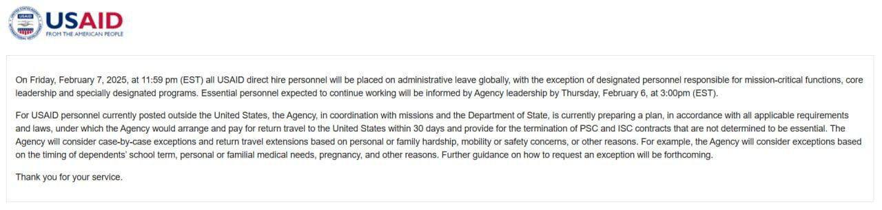 Співробітникам USAID у всьому світі нададуть адміністративну відпустку