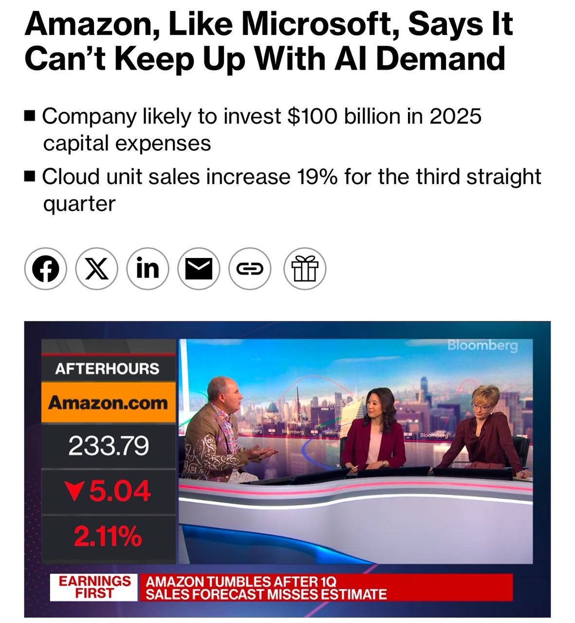 Генеральний директор Amazon Енді Джессі підкреслив прагнення компанії стати лідером на ринку ІІ, заявивши про готовність до значних інвестицій у розвиток хмарних обчислень. Проте компанія зіткнулася з труднощами при запуску нових центрів обробки даних через проблеми з постачанням чіпів від сторонніх виробників і власного підрозділу, а також через обмежену доступність енергії.