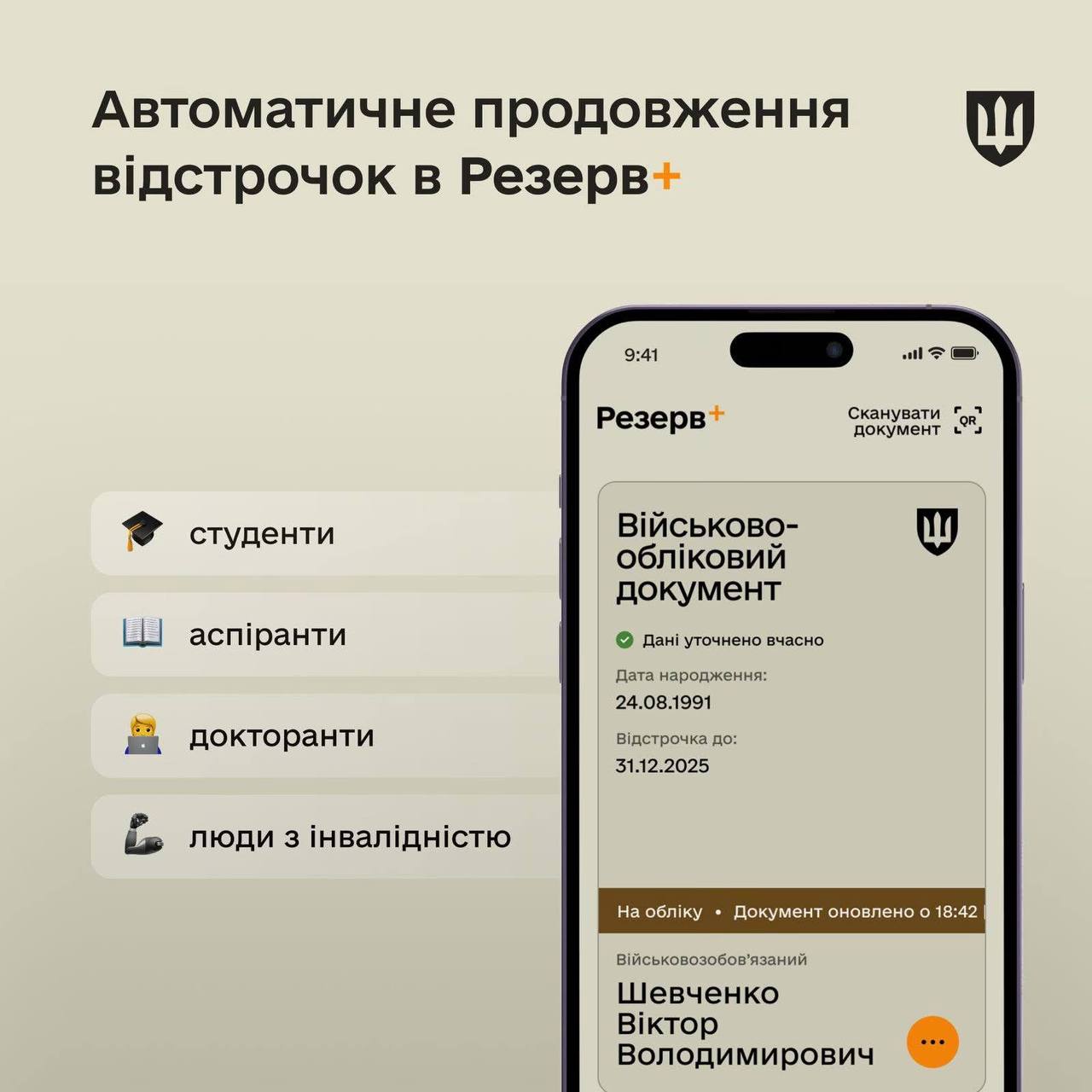 Спочатку функція стане доступною для відстрочок, оформлених через «Резерв+» (для осіб з інвалідністю, які мають посвідчення Пенсійного фонду, а також для студентів, аспірантів і докторантів).