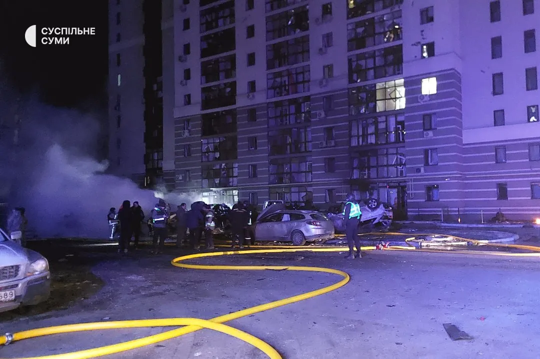 Глава Сумської ОВА Володимир Артюх уточнив, що приліт стався у житловому кварталі. Навколо розташовані будинки й школи. Рятувальні служби зараз проводять обхід по квартирах.