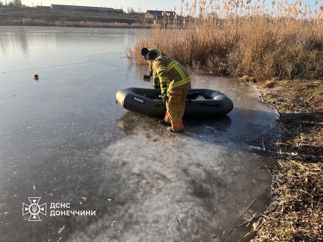 На Донеччині рятувальники ДСНС звільнили лебедів із крижаної пастки