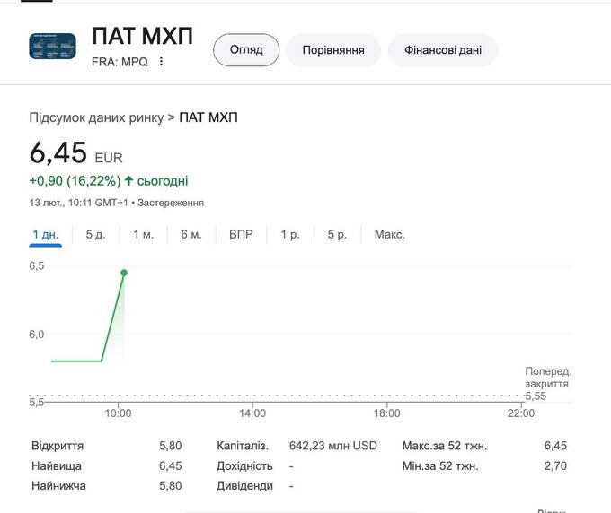 На Лондонській фондовій біржі (LSE) акції агрохолдингу МХП з початку торгів у четвер до 11:00 за київським часом підскочили на 13,29%, а гірничорудної компанії Ferrexpo – на 18,06%.