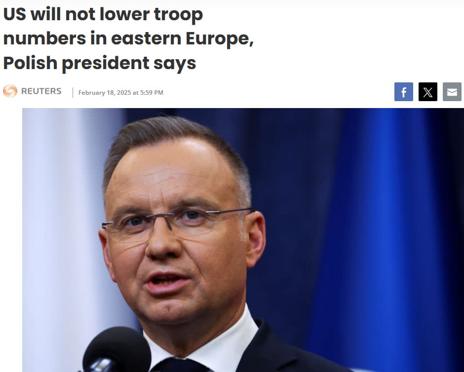 Він також відзначив, що міністр оборони США Піт Геґсет раніше підкреслив, що Польща може «розраховувати на збільшення американської присутності».