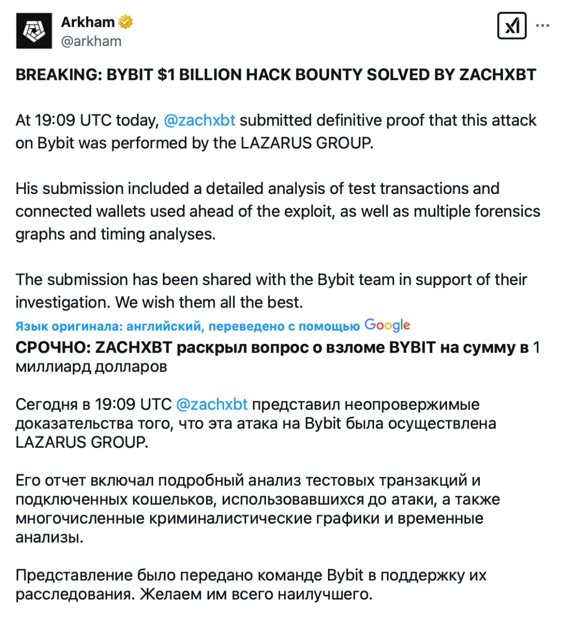 Криптодетектив ZachXBT представив переконливі докази того, що за атакою на Bybit стояла північнокорейська хакерська група Lazarus.