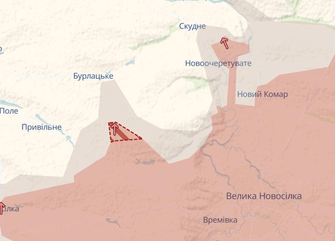 Також росіяни просунулися до села Бурлацьке на північний захід від Великої Новосілки.