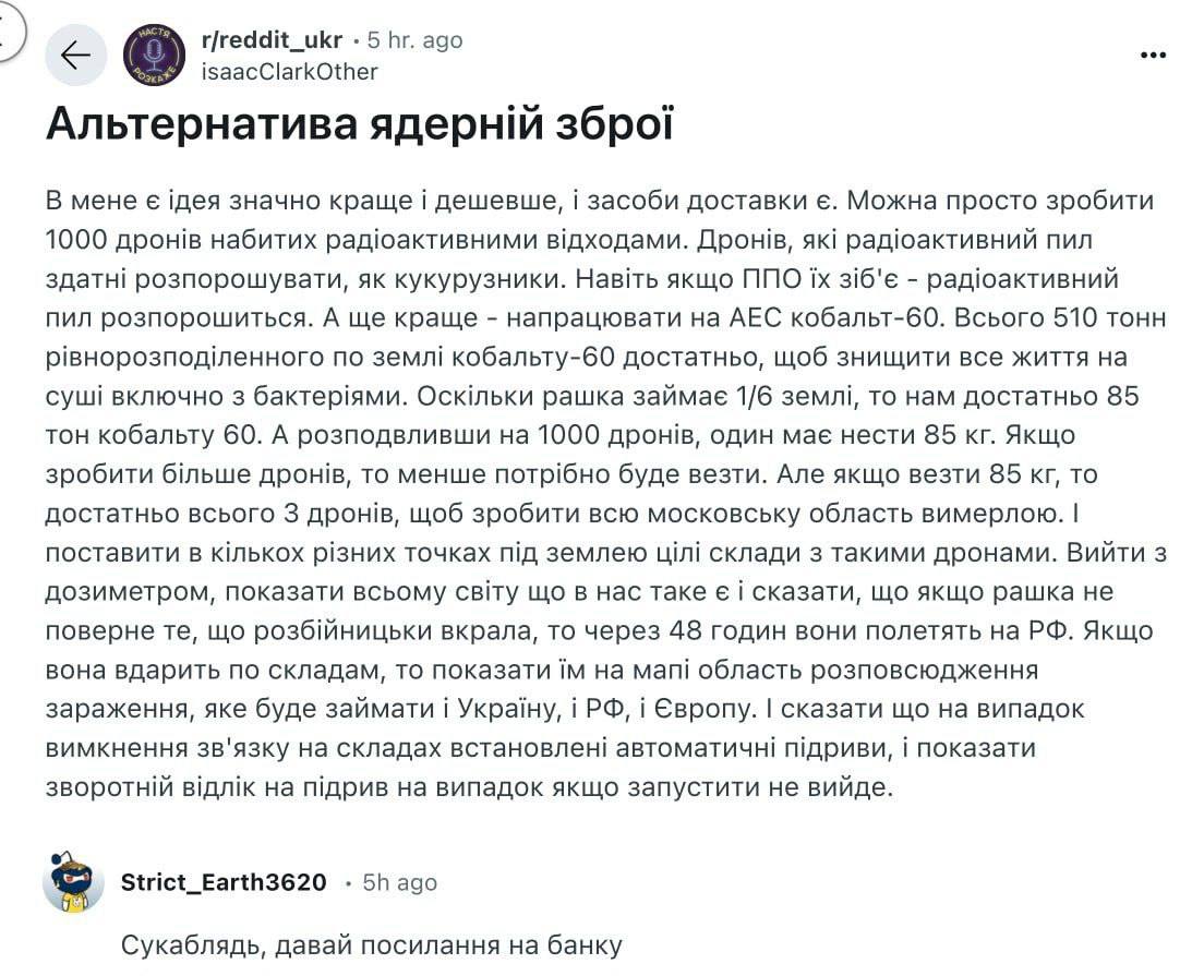Лише три дрони можуть призвести до вимирання в Московській області, – в інтернеті пропонують Україні виготовити 1 000 дронів з радіоактивними відходами як одну з гарантій безпеки.