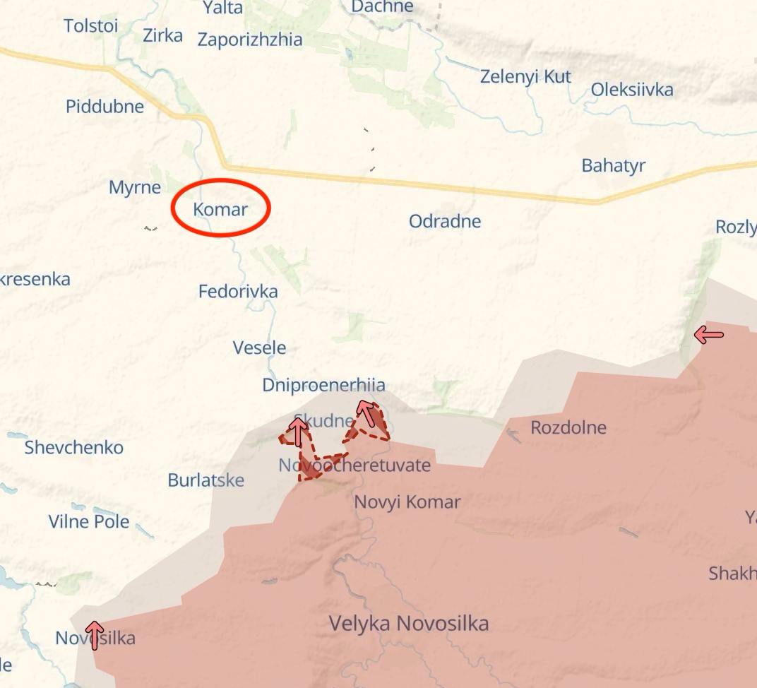 «Після заняття селища російські сили почали накопичувати ресурси, перегруповуватись, і відновили свою активність. Найбільший тиск спрямований у бік Скудного і Бурлацького. За цей період противник повністю захопив Новий Комар і отримав контроль над значною частиною Новоочарєватого. Війська майже впритул наблизилися до Бурлацького, просуваючись через лісосмуги, і продовжують чинити тиск», – ідеться в повідомленні пабліка.