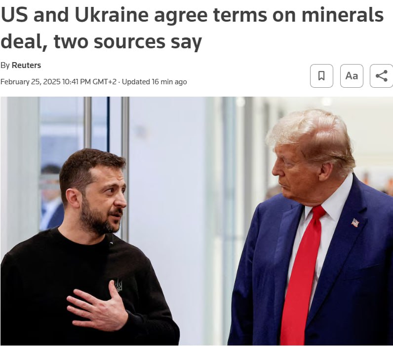 Як повідомляє Reuters, підписання договору про корисні копалини планується на 28 лютого.