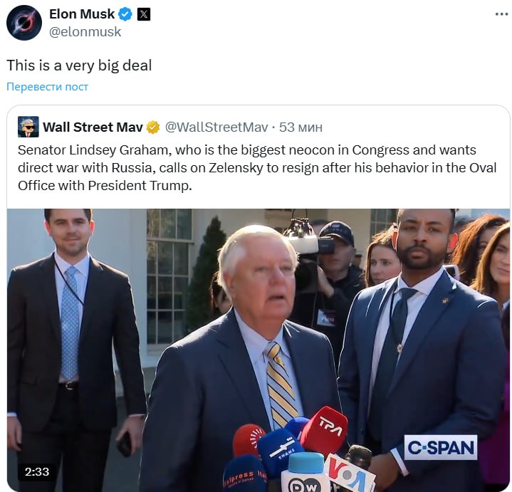 Маск підтримав заклик сенатора Грема до Зеленського піти у відставку.