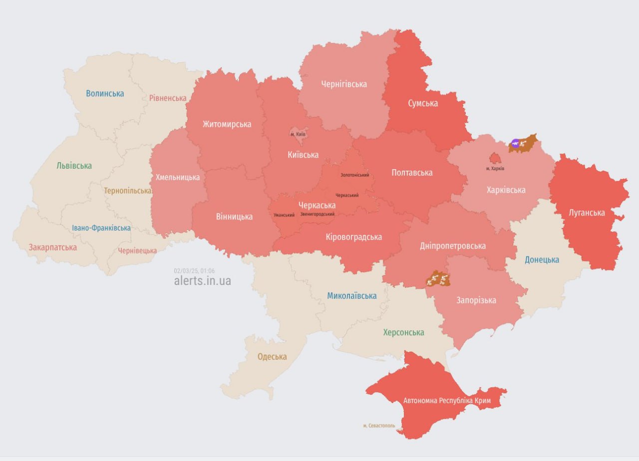 Повідомляється про можливі удари балістичними ракетами та ударними безпілотниками з боку Росії.