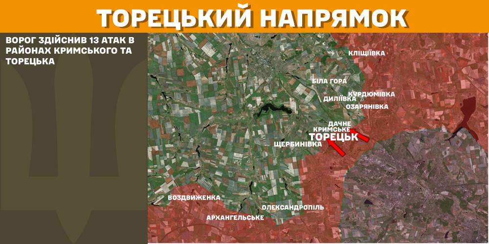 На Торецькому напрямку ворог здійснив 13 атак в районах Кримського та Торецька.