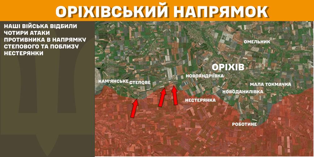 На Оріхівському напрямку українські захисники відбили чотири атаки противника в напрямку Степового та поблизу Нестерянки.