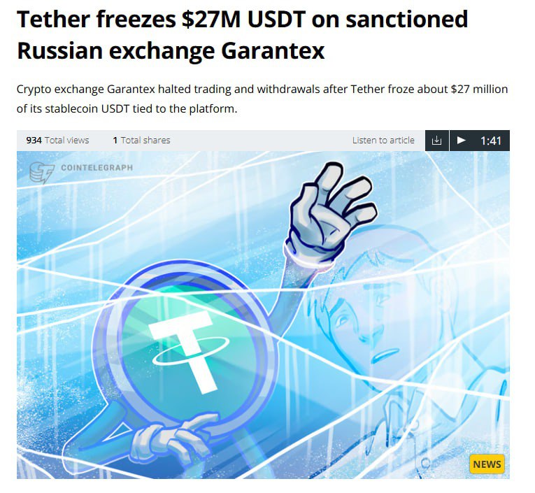 Команда Garantex вважає, що всі USDT на гаманцях в Росії тепер знаходяться під загрозою.