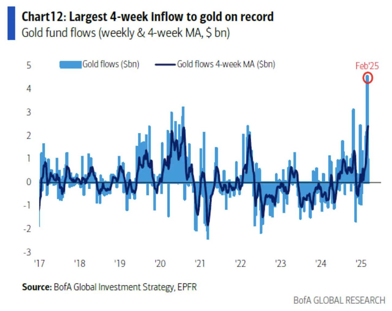 Наприклад, у січні Сполучені Штати ввезли золото на рекордну суму в $30,8 млрд, що значно більше порівняно з $1,7 млрд щомісяця у попередні роки.