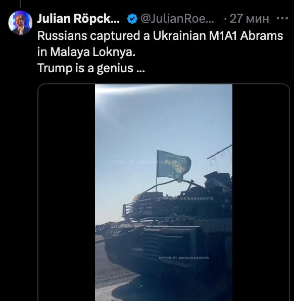 Крім того, у Малой Локні окупанти захопили американський танк M1 Abrams, який був на озброєнні українських сил.