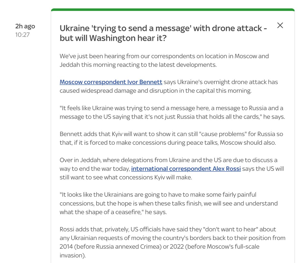 Команда Трампа "не хоче чути" нічого від України про повернення до кордонів 2014 чи навіть 2022 року, повідомляє Sky News, посилаючись на анонімні заяви американської делегації в Джидді.