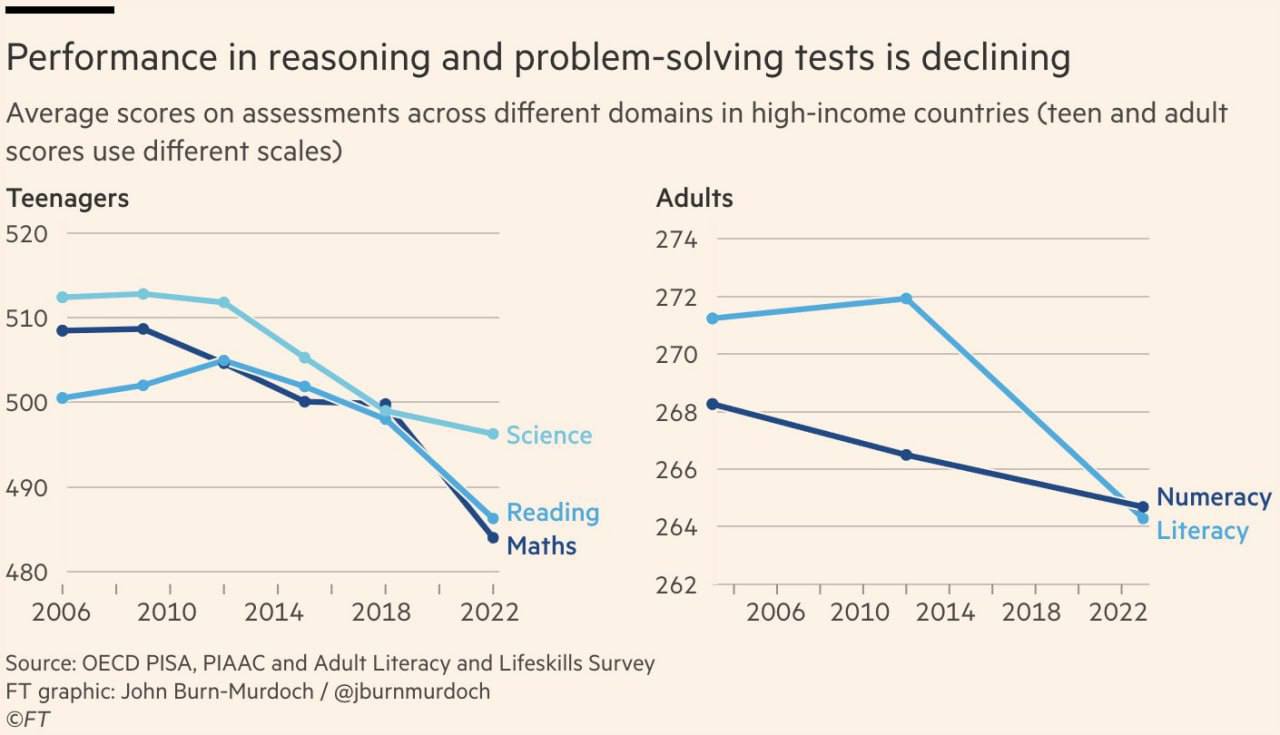 Статистичні дані вказують, що з 2010 року люди гірше концентруються, слабше аналізують інформацію та втрачають логічне мислення.