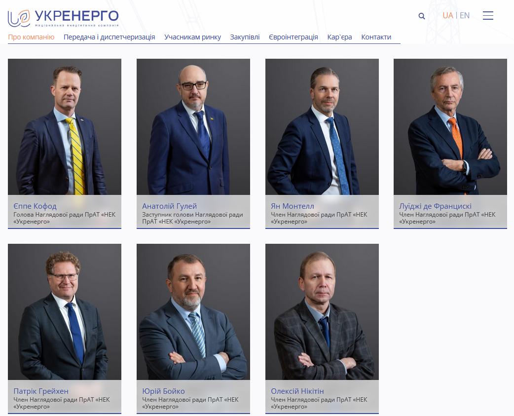 До складу наглядової ради «Укренерго» входять Патрік Роланд Грейхен, Луїджі де Францискі, Єппе Себастьян Кофод, Ян Генрік Монтелл, Юрій Бойко, Анатолій Гулей та Олексій Нікітін. Компанія «Кроу Україна» має виконати аналіз матеріалів для зовнішньої оцінки, провести інтерв’ю з членами наглядової ради та іншими працівниками компанії щодо ефективності її діяльності, а також підготувати проєкт звіту про оцінку для подальшого затвердження.