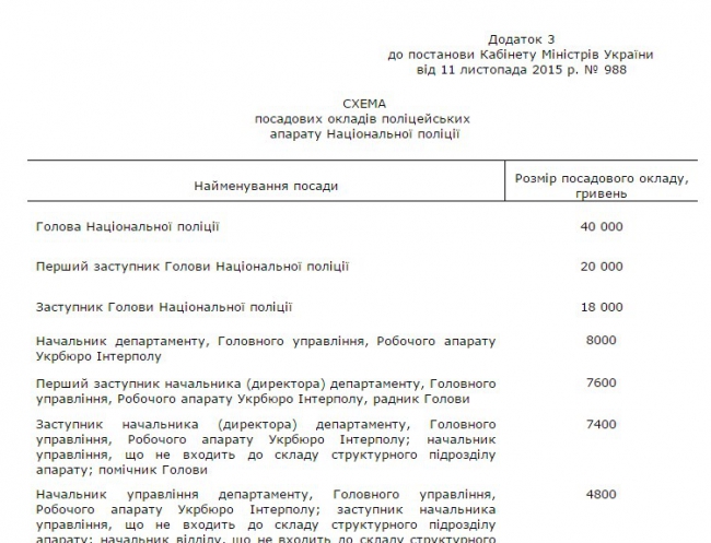 Согласно приложению №3 к этому постановлению, должностной оклад руководителя Национальной полиции составит 40 000 грн в месяц.