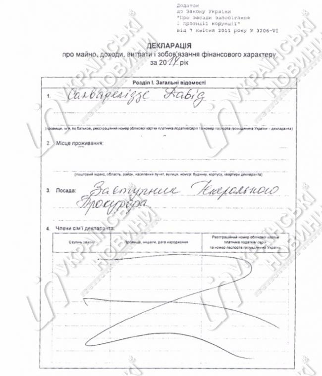 В собственности Давада Сакварелидзе имеется квартира в 100 кв метров. Больше никакого имущества у заместителя Генпрокурора в Украине нет. Денег на счетах в банках - тоже.