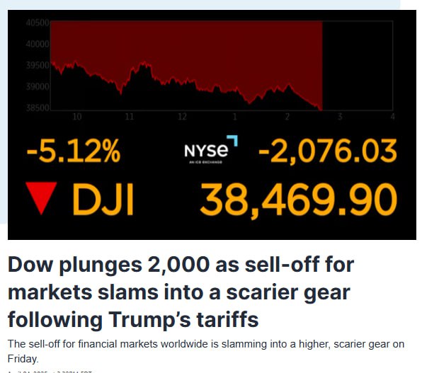 Основні біржові індекси США до закриття торгів 4 квітня втратили близько 5% на тлі оголошення Китаю про додаткові мита.