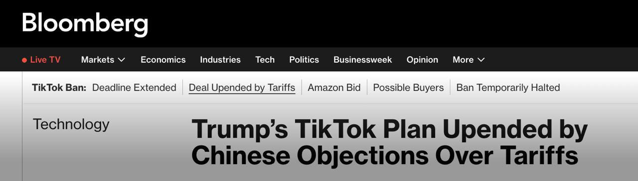 Китай відхилив угоду про продаж TikTok у США після того, як президент Дональд Трамп оголосив про запровадження нових митних зборів, повідомляє Bloomberg.