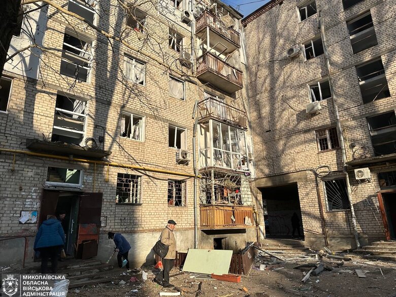 У Миколаєві усувають наслідки нічної атаки дронами-камікадзе - в місті зазнали пошкоджень багатоквартирні будинки, автомобілі, гаражі та адміністративна будівля.