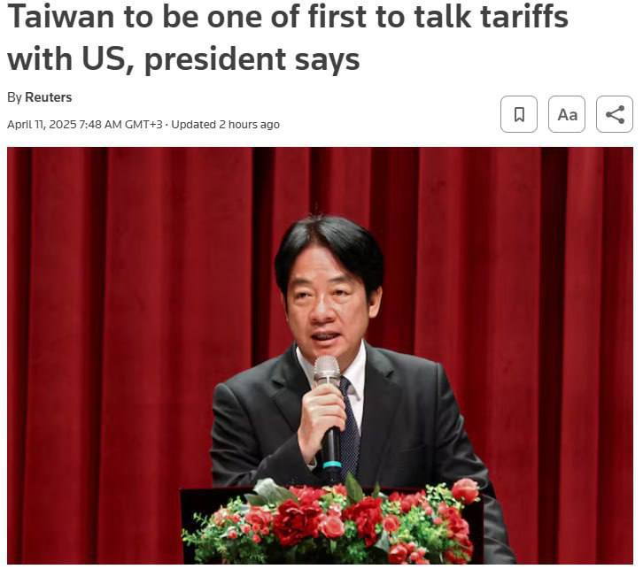 За словами президента Лай Чін-де, Тайвань включений до першої хвилі країн, з якими США розпочнуть торгові переговори після запровадження нових мит.