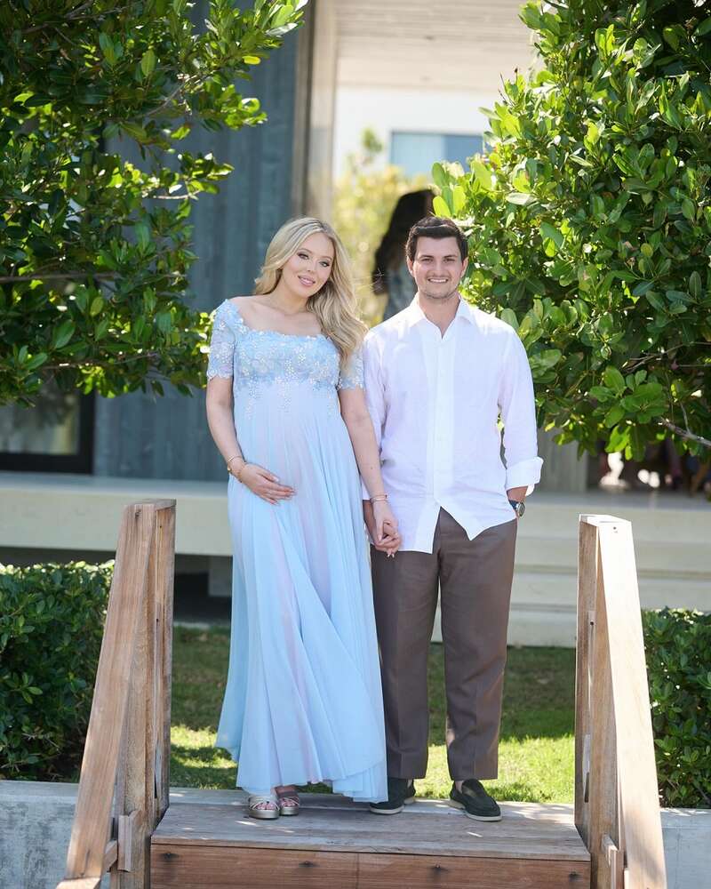 Тіффані поділилася кількома фотографіями. На заході все було оформлено в блакитних тонах, як і її наряд. Також дочка президента США натякнула, що малюк з’явиться на світ уже через місяць. Це буде її перша дитина, так само як і для її чоловіка Майкла Булоса. Майкл — син мільйонера Массада Булоса, підприємця і старшого радника Дональда Трампа.