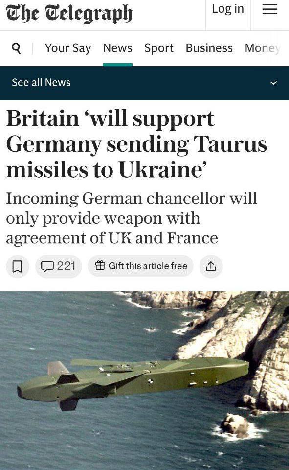 За словами британського чиновника, який займається зовнішньою політикою, Велика Британія давно підтримує ідею, щоб Німеччина передала Україні ракети Taurus, і підтримає цей крок, якщо новий канцлер зробить це зараз.