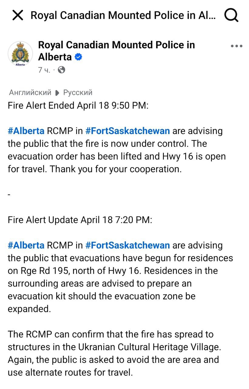 У Канаді масштабна пожежа охопила Село української культурної спадщини біля Едмонтона