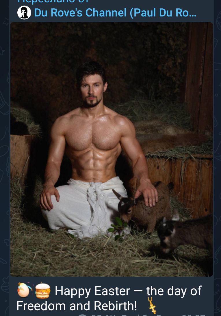 Творець Telegram Павло Дуров із оголеним торсом випустив привітальне повідомлення на Великдень.