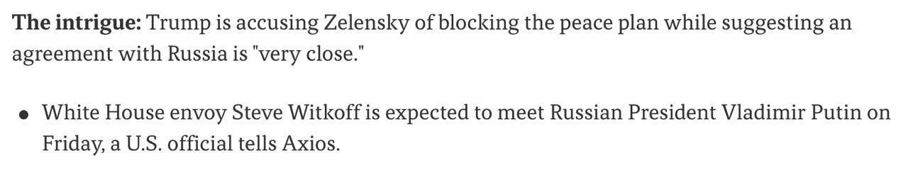 «Передбачається, що спеціальний посланець Білого дому Віткофф зустрінеться з президентом Путіним у п’ятницю, 25 квітня», – йдеться у повідомленні.