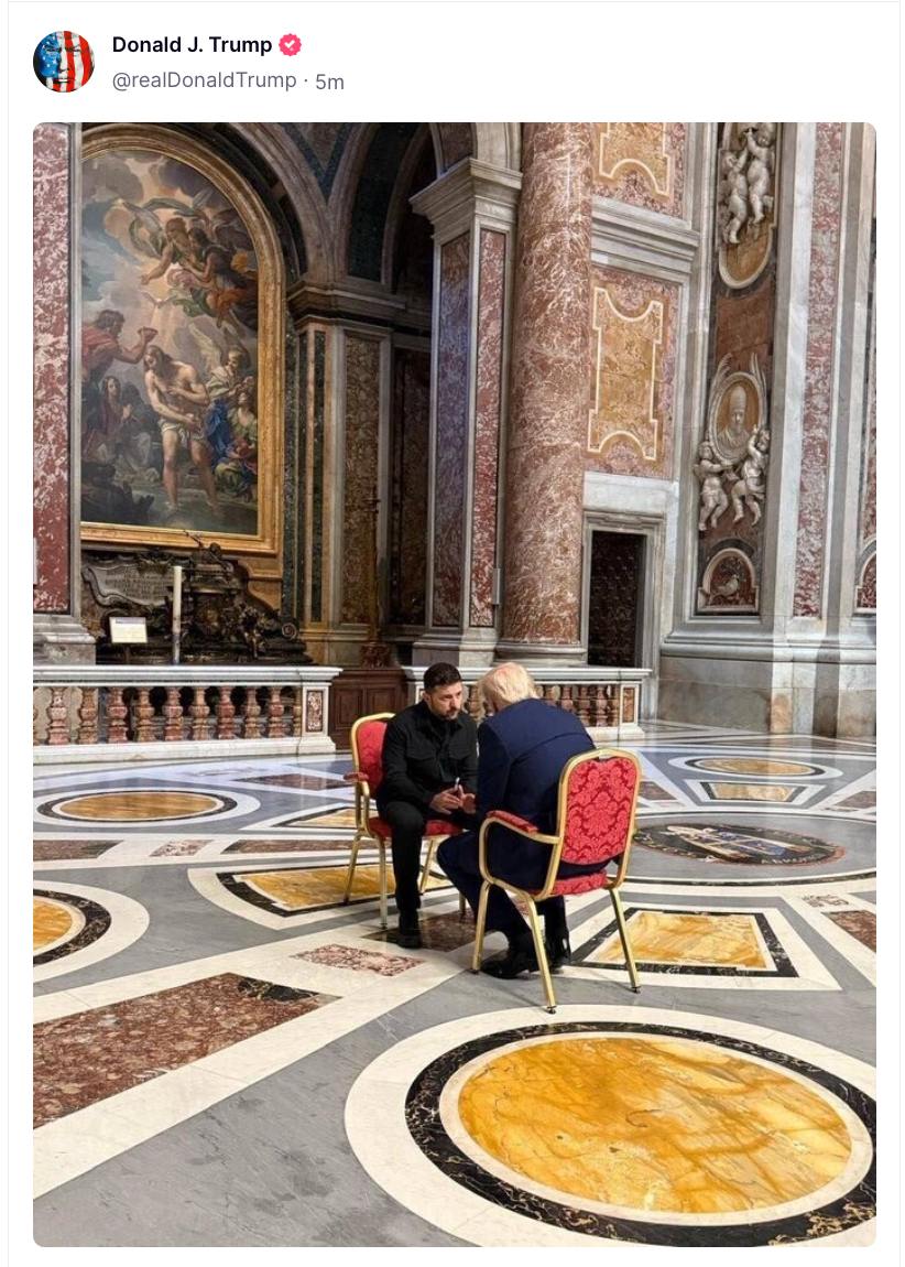 Зеленський і Трамп зустрілися у Ватикані: президент США показав фото в соцмережі