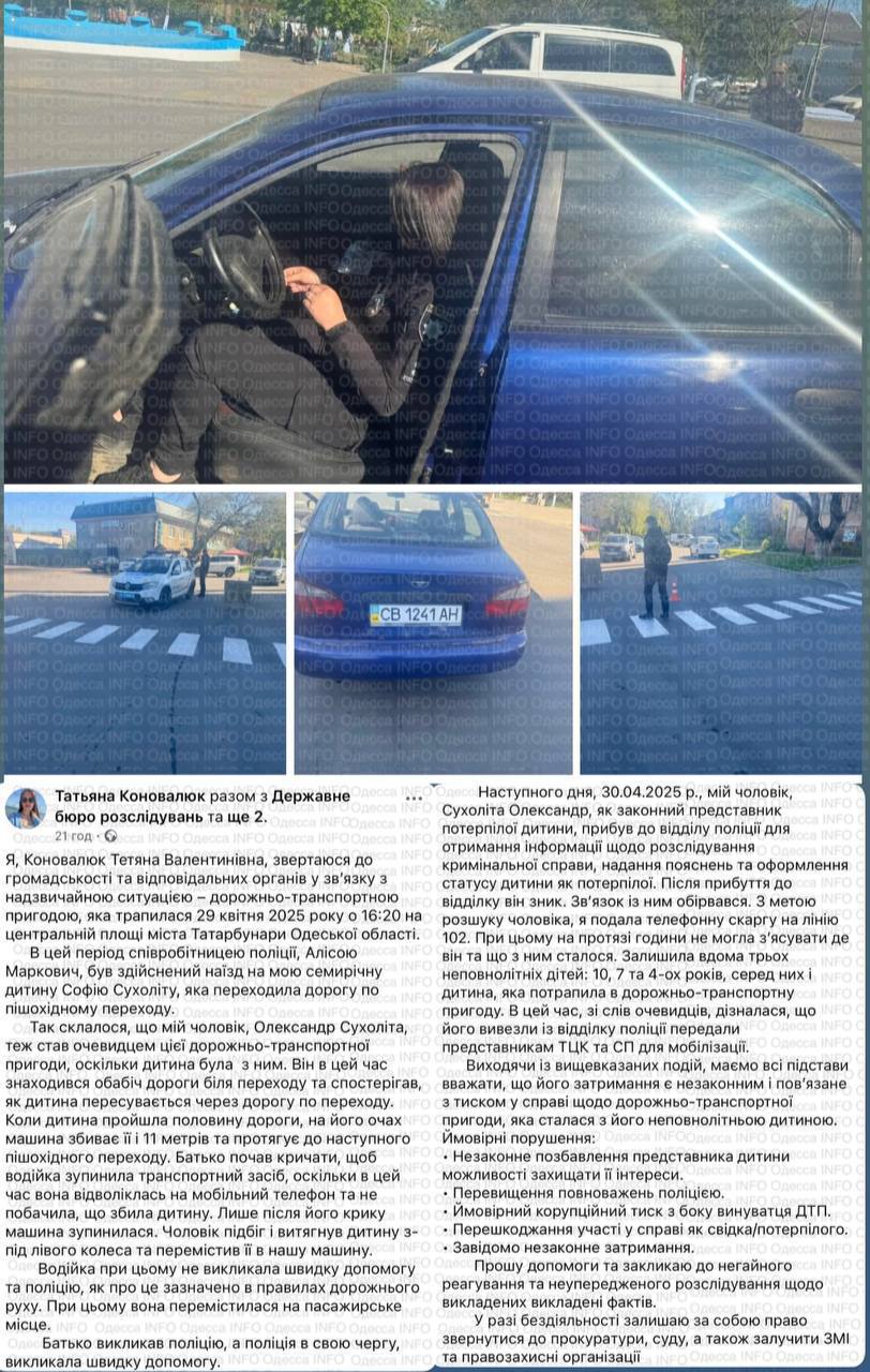В Одеській області розпочато службове розслідування щодо співробітниці поліції, яка потрапила в ДТП з наїздом на дитину.