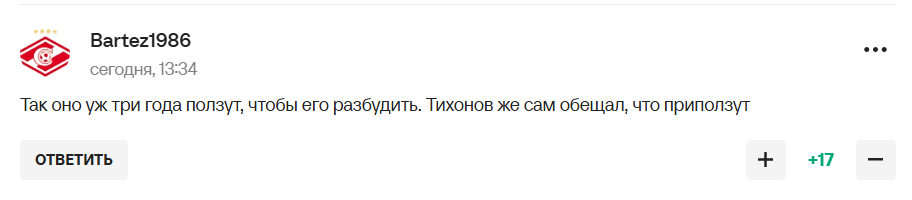 "Приберіть з палати телевізор і призначте новий курс", – написав користувач Відмінник Ослов. – "Хто б тобі заклеїв", – відповів Денис Грибанов. – "Так вже три роки повзуть, щоб його розбудити. Тихонов сам обіцяв, що приповзуть", - нагадав Bartez1986. - "Одна вже бомбою погрожувала. Ти чого зробиш - надуєш щоки та голосно пердунеш? Нехай вороги задихнуться", - в’їдливо сказав Гліб Вихрєв. – "Не дай Боже бути таким у 78…", – написав JENNINGS. – "Норвежці тремтять…", – іронічно сказав Data Architector.
