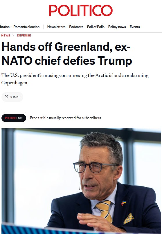 Расмуссен, який був прем’єр-міністром Данії з 2001 по 2009 рік, підкреслив, що Гренландія «це частина Данії, і самі гренландці не хочуть ставати частиною Америки».