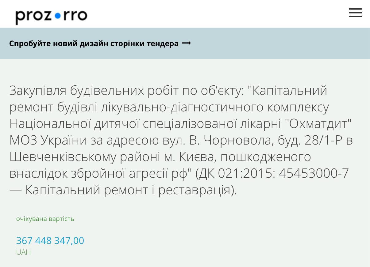 Після скасування попереднього скандального тендеру на відбудову головної дитячої лікарні країни, «Охматдиту», новий конкурс знову викликає запитання.