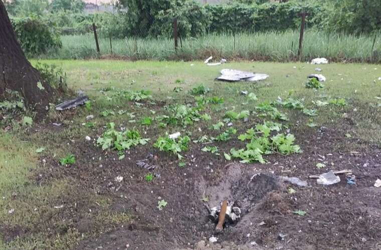 У Бучанському районі Київської області уламки збитого дрона-камікадзе впали просто посеред приватного сектору. Через подію, яка сталася в понеділок, 26 травня, близько 6:00, утворилася вирва.