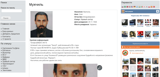 После того как из СБУ просочилась информация о настоящем имени ликвидированного "диверсанта", он сразу же обнаружился на сайте "Антиукроп" - там, где представители "Л-ДНР" публикуют персональные данные своих идейных врагов.