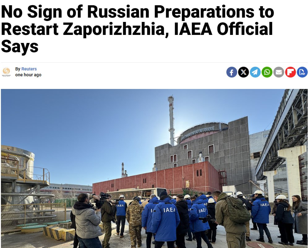 Спостерігачі Міжнародного агентства з атомної енергії (МАГАТЕ), що працюють на Запорізькій атомній електростанції, не бачать ознак підготовки до її перезапуску.