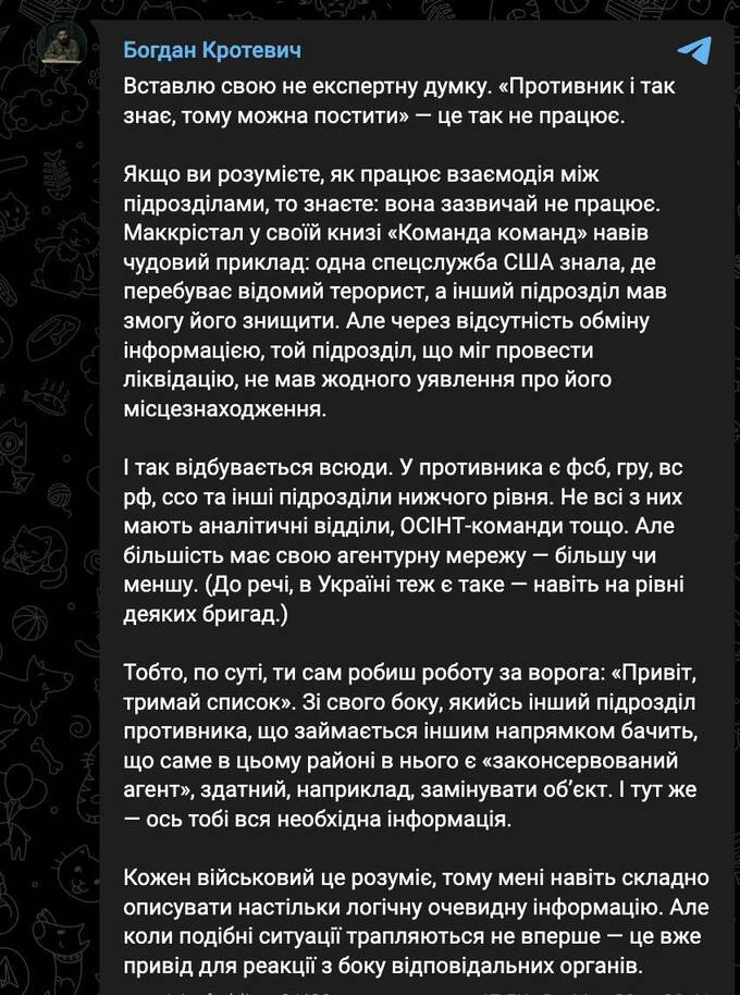 Український офіцер із позивним «Алекс» додав, що, хоч інформація й доступна, не варто зайвий раз підсвічувати важливі для нас деталі.