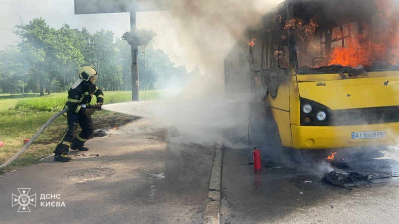 ДСНС Києва також розмістила фотографії з гасіння пожежі в маршрутному таксі.