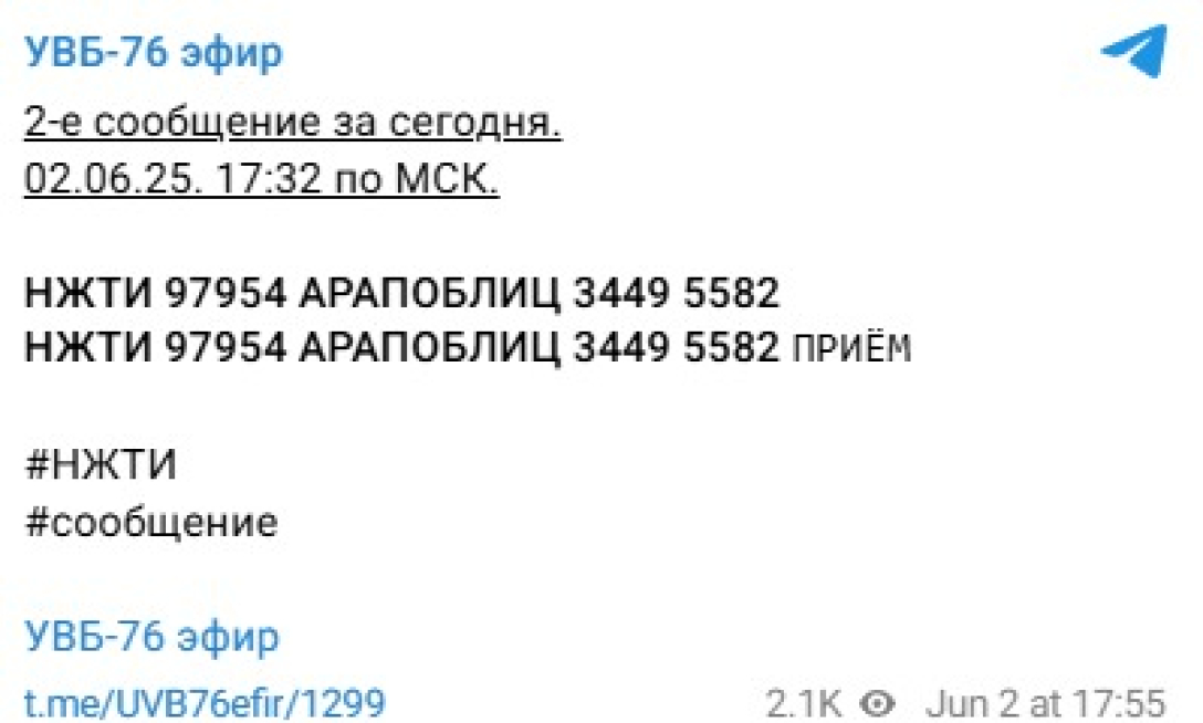 Короткохвильова радіостанція УВБ-76, також відома як "Радіостанція Судного дня", передала нове закодоване повідомлення. Воно прозвучало о 16:00 — відразу після завершення переговорів між делегаціями України та Росії в Стамбулі.